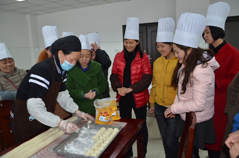 為迎接“三八”國際勞動?jì)D女節(jié),營造濃厚的婦女節(jié)氛圍,倡導(dǎo)健康生活,快樂工作的生活理念,三月八日下午公司女職工集聚一堂,來到公司食堂,學(xué)習(xí)了有著嘉興本地特色的三道經(jīng)典中式面點(diǎn):包子、糯米燒麥及湯圓。為了本次活動工會特意從五芳齋請來了有著20多年制作經(jīng)驗(yàn)的面點(diǎn)大師。大家認(rèn)真聆聽了師傅教授的制作工序及技巧以后,紛紛興致勃勃地制作了起來,現(xiàn)場洋溢著一片歡樂的氛圍。